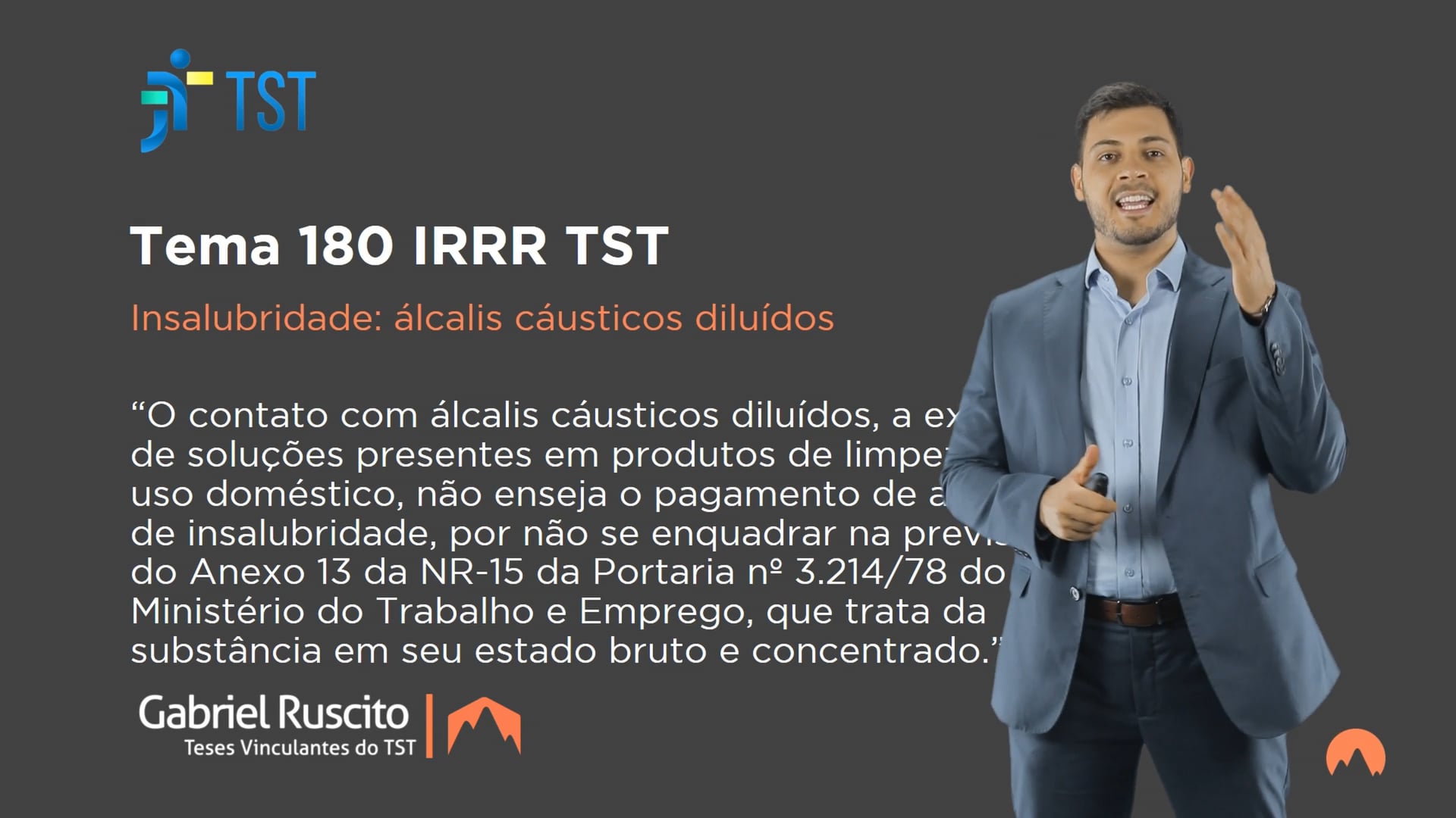 O contato com álcalis cáusticos diluídos, a exemplo de soluções presentes em produtos de limpeza de uso doméstico, não enseja o pagamento de adicional de insalubridade, por não se enquadrar na previsão do Anexo 13 da NR-15 da Portaria nº 3.214/78 do Ministério do Trabalho e Emprego, que trata da substância em seu estado bruto e concentrado.