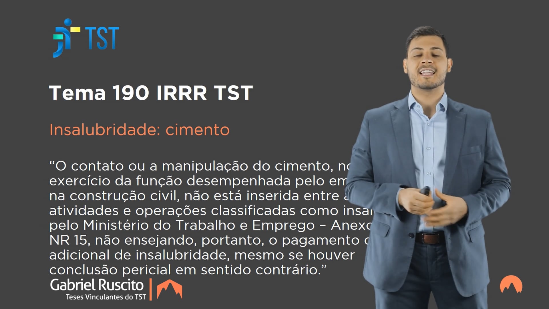 O contato ou a manipulação do cimento, no exercício da função desempenhada pelo empregado na construção civil, não está inserida entre as atividades e operações classificadas como insalubres pelo Ministério do Trabalho e Emprego – Anexo 13 da NR 15, não ensejando, portanto, o pagamento do adicional de insalubridade, mesmo se houver conclusão pericial em sentido contrário.