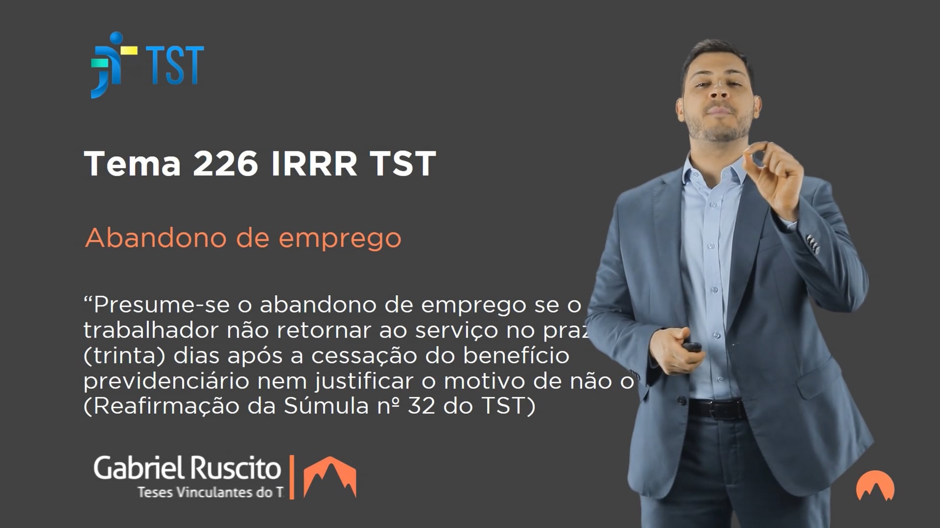 CESSAÇÃO DE BENEFÍCIO PREVIDENCIÁRIO. ABANDONO DE EMPREGO. PRESUNÇÃO. CRITÉRIOS. PRAZO PARA RETORNO. APRESENTAÇÃO DE JUSTIFICATIVA. Presume-se o abandono de emprego se o trabalhador não retornar ao serviço no prazo de 30 (trinta) dias após a cessação do benefício previdenciário nem justificar o motivo de não o fazer. (Reafirmação da Súmula nº 32 do TST)