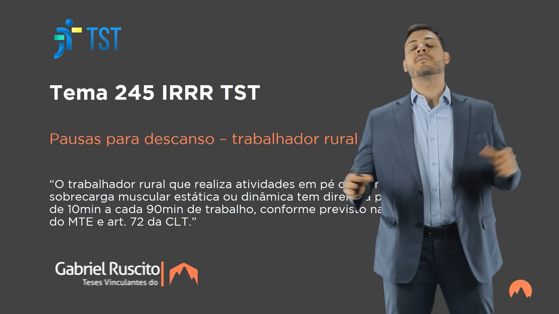 O trabalhador rural que realiza atividades em pé ou com sobrecarga muscular estática ou dinâmica tem direito a pausas de 10min a cada 90min de trabalho, conforme previsto na NR-31 do MTE e art. 72 da CLT.